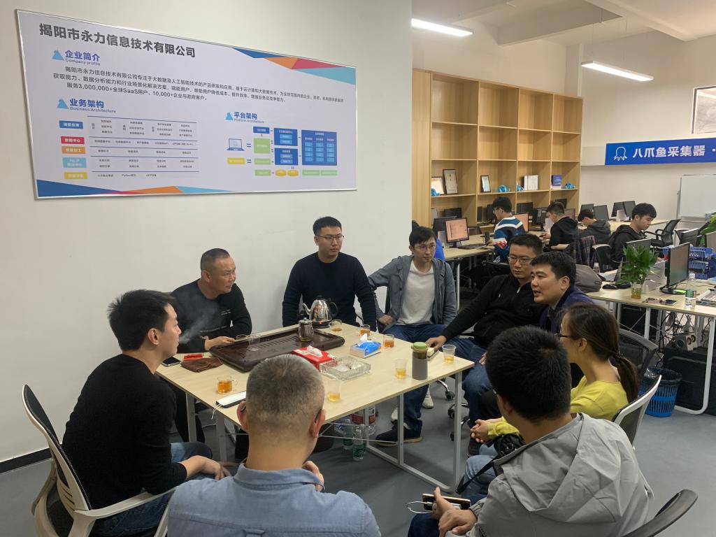 校企双方上午在揭阳永力信息技术有限公司召开了座谈会。座谈会会上李宗辉副主任对深圳视界刘宝强总经理一行的到来表示热烈欢迎,对企业支持学校的发展表示衷心感谢。李宗辉副主任首先介绍了信息工程系的基本情况,并就共建“大数据创新工作坊”发表了意见。刘宝强总经理介绍了深圳视界信息技术有限公司的基本情况、发展前景,就共建“大数据创新工作坊”与学校和永力进行了深入探讨。接着相关专业教师和企业之间进行了细致而充分地交流。