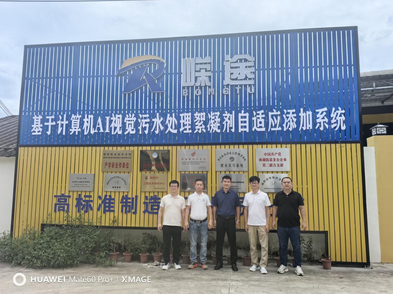 李宗辉一行受到了公司领导黄耿佳、陈楚涛的热情接待。双方首先就产学研合作项目“基于计算机AI视觉污水处理絮凝剂自适应添加系统”项目进行了深入探讨,并参观了产品研发与生产基地。在接下来的座谈会中,校企双方就产学研合作、实训实习基地建设、学生实习就业等方面进行了细致交流和合作研讨。双方表示愿在合作开发项目、人才培养、实习就业等方面进一步加强合作,实现校企产教深度融合。