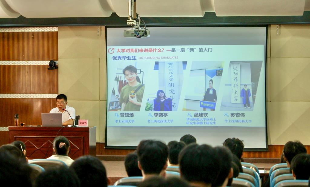 许茂伟书记以习近平总书记对新时代青年提出的殷切期望为根本遵循,回溯新中国波澜壮阔的发展历程,分析当前国际形势的新动态、新挑战,引导我系学子深刻认识自身所处的历史方位与时代责任。他围绕"大学对我们来说意味着什么?""揭阳给我们带来什么机遇?"以及"我们该如何融入揭阳发展"这三个核心问题,层层深入,展开了深刻论述。