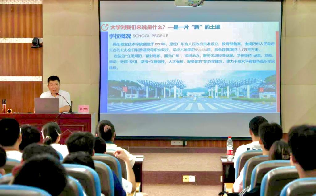 10月11日,学校党委书记许茂伟于慈云教学楼AT21教室为电子信息工程技术专业251班、人工智能技术应用专业251班全体同学讲授了一堂立意深远、内容生动的"思政第一课"。本次课程以"青春启航,强国有我,立足揭阳,谱写华章"为主题,紧密结合国家发展大势与地方机遇,为我系学子的成长成才指明了方向。